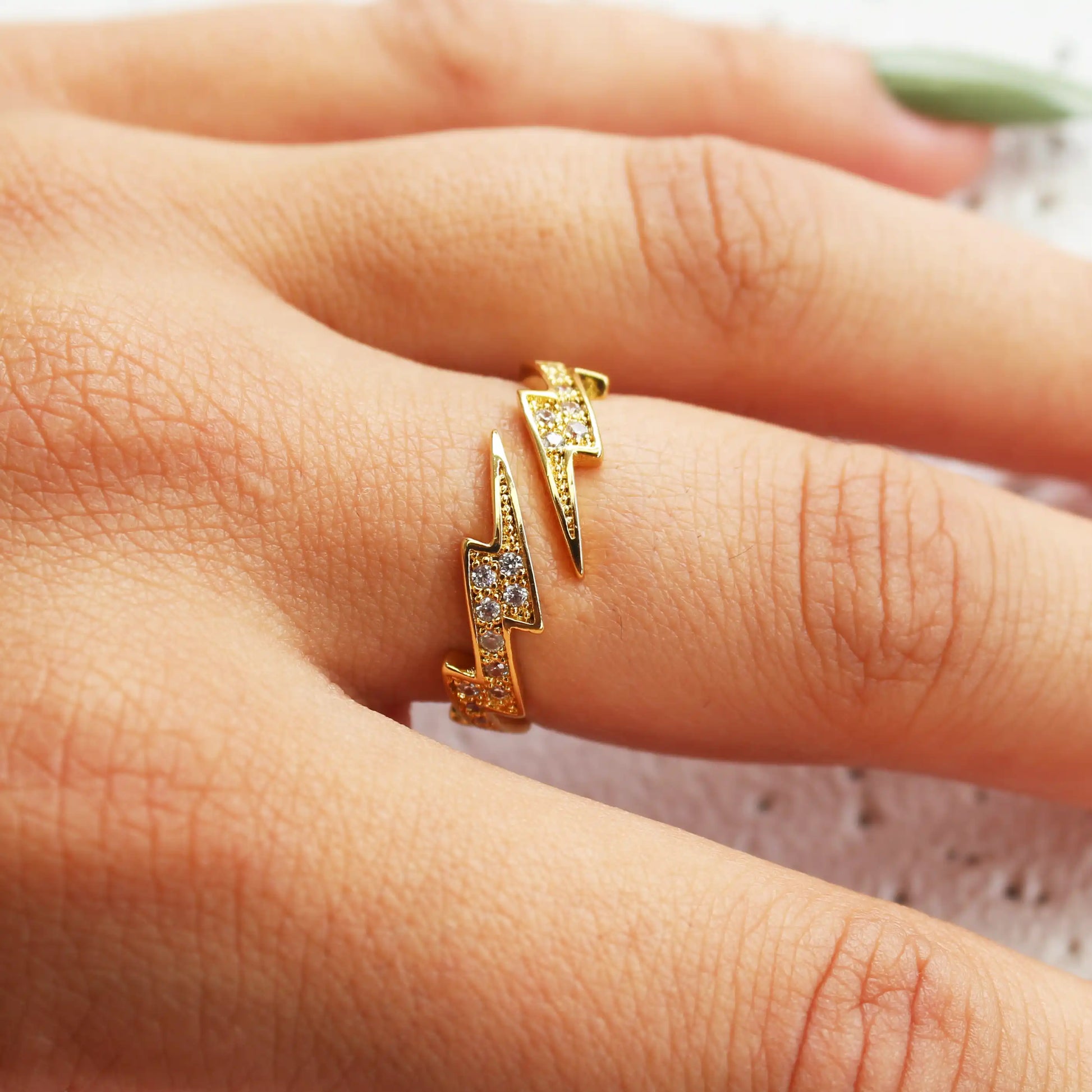 Gold Plated Cubic Zirconia Bolt Ring - Aria