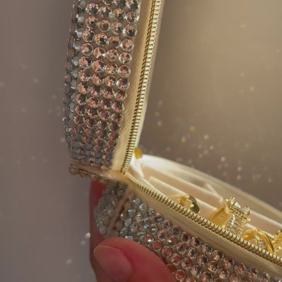 - Material: Velvet, high-grade glass crystals, metal zipper