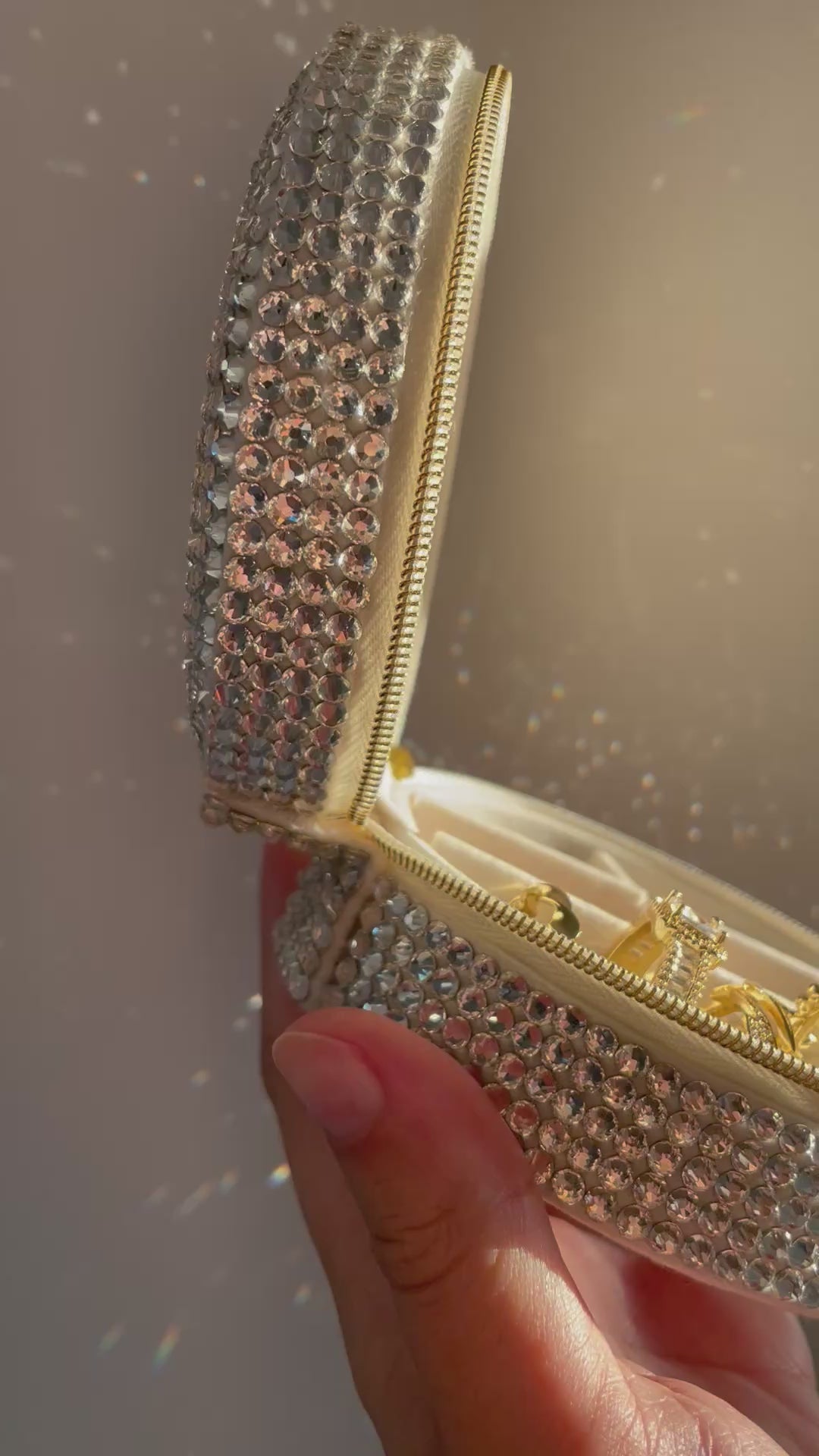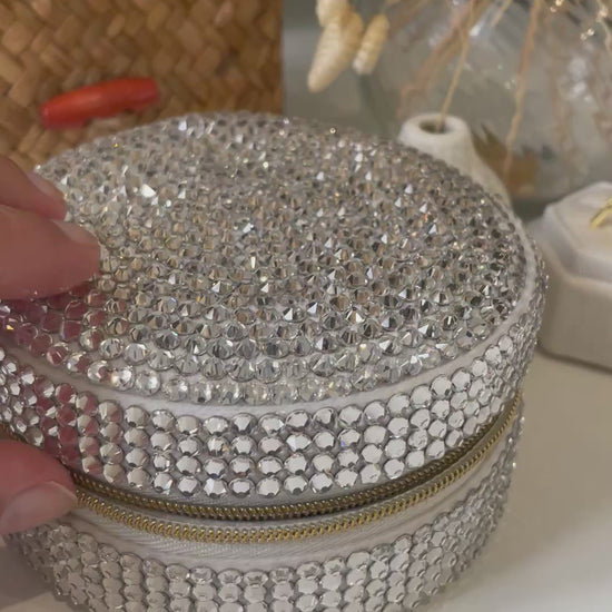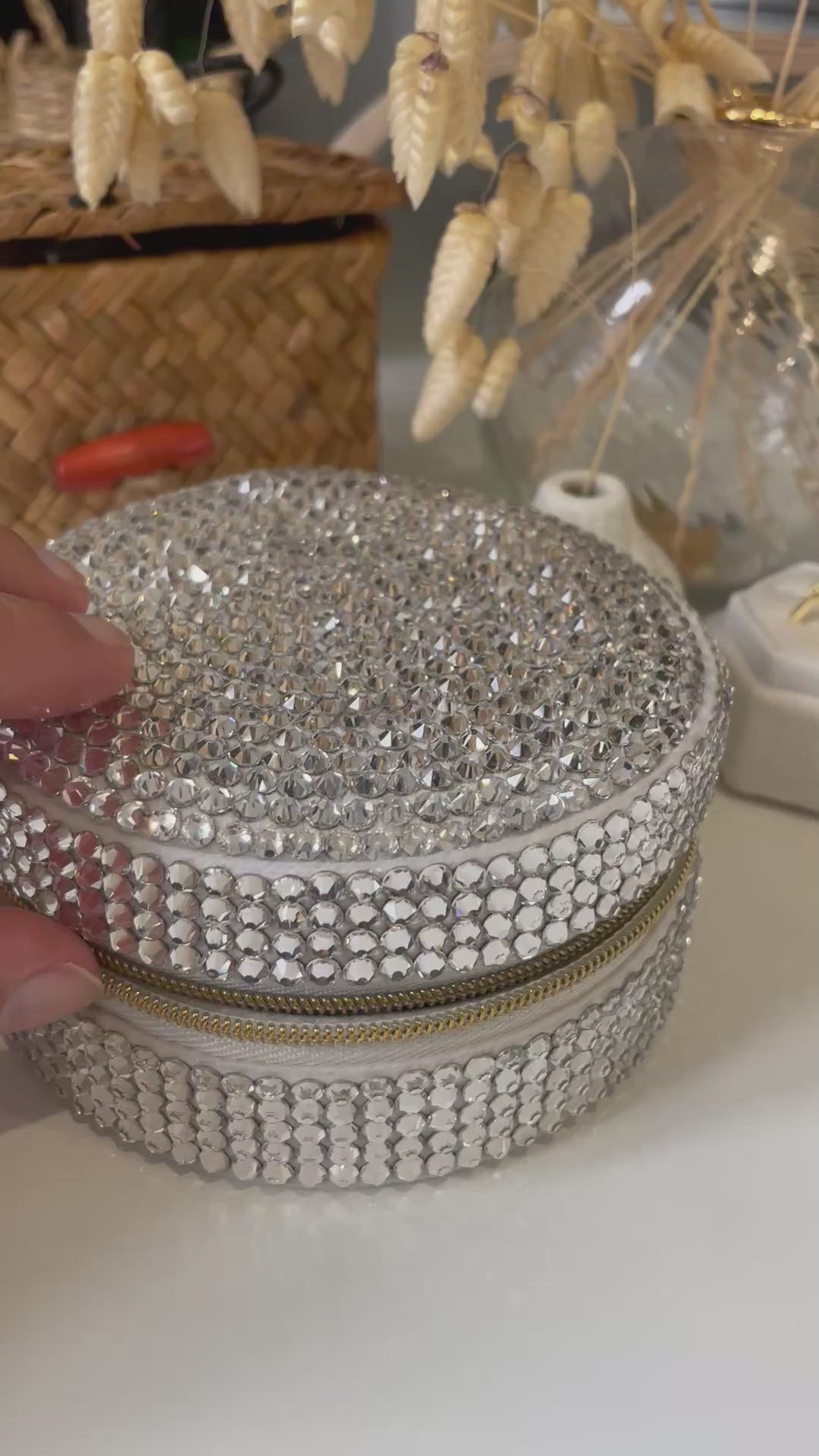Perfect for storing your favorite rings, earrings, necklaces, or keepsakes, this round crystal box doubles as a statement décor piece — a true embodiment of glamour and artistry.